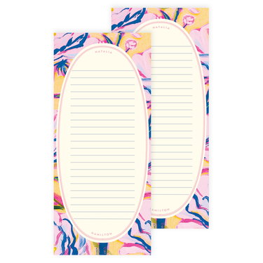 Design your own custom list pad set and always have stylish notepads on hand! Perfect for grocery lists, packing lists, checklists, taking notes, planning, and more. Made in the USA with thick, luxurious paper (resist ink bleeding), to provide an elevated writing experience. Choose your list pad layout and personalize it with your name, favorite quote, subject matter, whatever! These personalized notepads are also great for gifting!