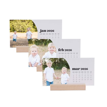 Every photo desktop calendar includes a five inch wood block calendar stand so you can display your calendar with ease and style. These thoughtfully designed calendars make exceptional personalized gifts for friends and family members.