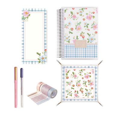 This beautiful notebook bundle includes our best-selling writing tools in coordinating hues, functional washi tape for added organization and productivity, a coordinating list pad for quick notes and list making, and a matching large valet tray to keep your planning essentials beautifully organized.